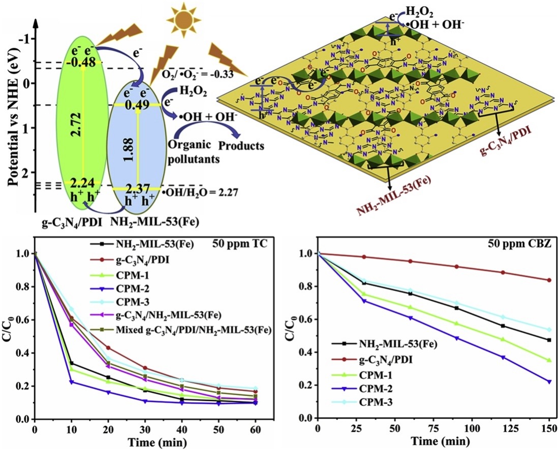 【NH₂-MIL-53(Fe)】g-C₃N₄/PDI@MOF异质结的构建及其高效可见光驱动降解药物和酚类微污染物