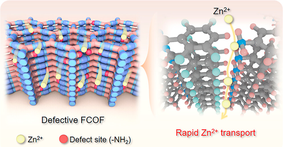 1.水系锌电池(ZIBs)因原料丰富、安全环保受关注,但锌枝晶、电极腐蚀及水诱导副反应(如HER)制约规模化应用,核心症结在于正负极界面反应失控。 2.共价有机框架(COFs)凭借规整结构与功能可调性成为界面调控材料,已有研究通过缺陷工程提升COF性能(如海水淡化离子筛分、催化效率提升),但精准调控COF缺陷类型与含量仍存挑战。