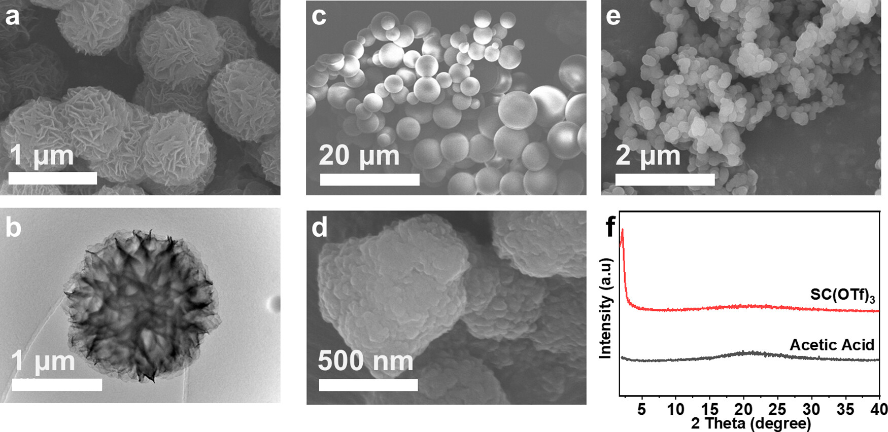 -优化合成条件(1,2-二氯苯/正丁醇=1:4为溶剂,Sc(OTf)₃为催化剂,130℃溶剂热),获得纳米花状形貌的COF材料,提升了离子扩散效率与电化学活性位点利用率。