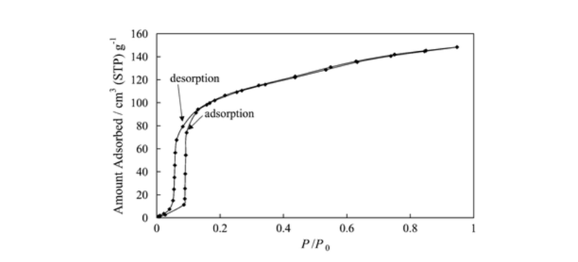 3. 甲烷吸附测试:298K下吸附-脱附存在滞后环,特定压力以上吸附量骤增,循环测试性能稳定。