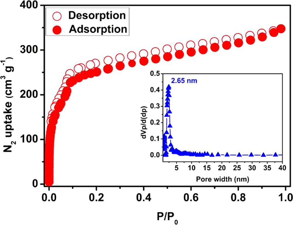 图4. 3D-lnj-COF的氮吸附-脱附等温线和77K时的孔径分布