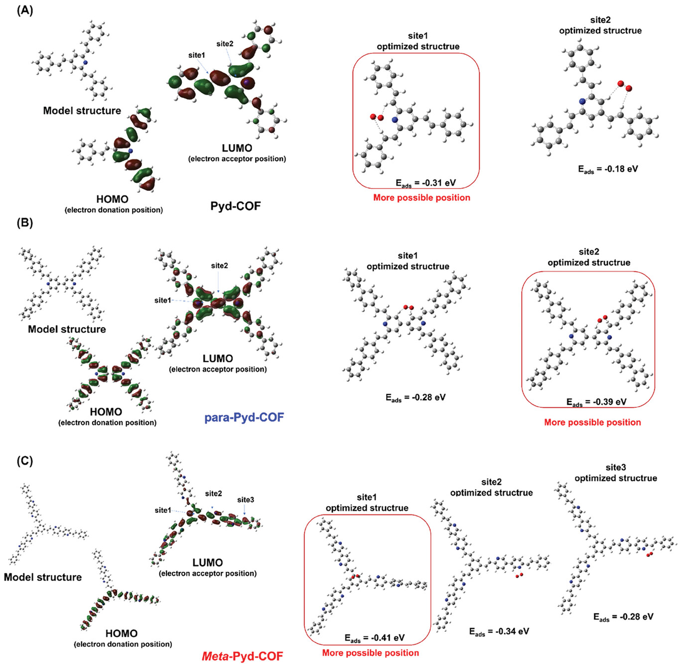2)通过改变吡啶单元的连接方式调控了COF的电子态;
