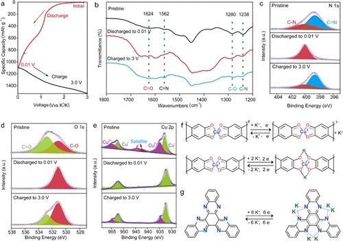 2)C═N基团和CuO4单元作为丰富的氧化还原活性位点,与结构优势共同促进了快速的K+/e^-传输。