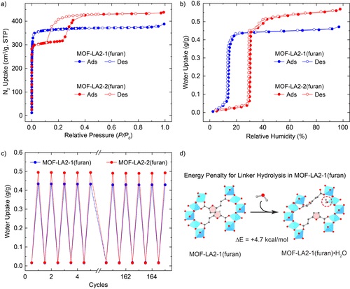 5)进行了165个吸附-脱附循环实验,表明这两种MOF具有出色的水稳定性。