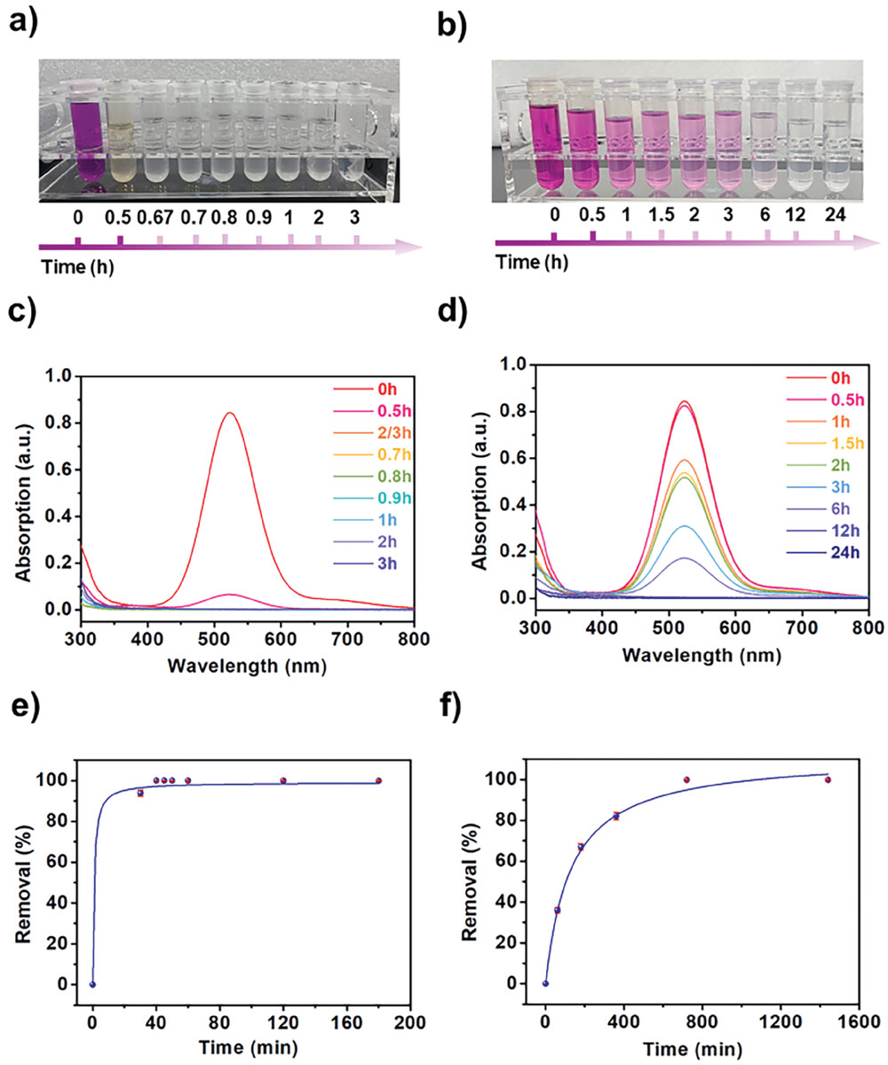 3)通过时间依赖的UV/vis光谱分析研究了FJI-H39和FJI-H40对I2的吸附动力学。结果显示,FJI-H39的吸附速率比FJI-H40快124倍,吸附容量也更高。在40分钟内,FJI-H39可以吸附93%的I2,而FJI-H40只能吸附2.4%。