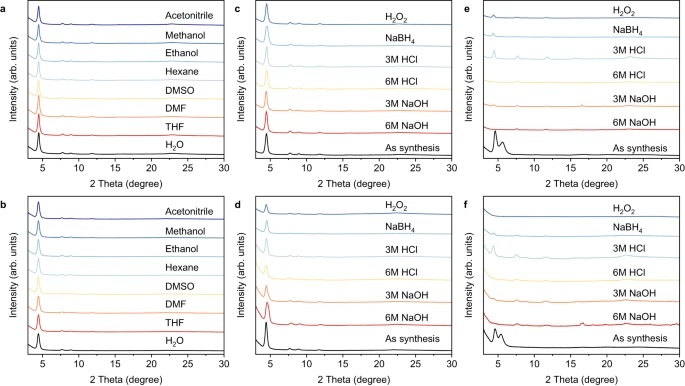 3)研究了TFPA-TAPT-COF-Q和TFPA-TPB-COF-Q在酸、碱、氧化剂和还原剂等苛刻条件下的化学稳定性。PXRD结果表明,它们在这些条件下仍能保持良好的结晶度,证实了喹啉连接策略提高了COF材料的化学稳定性。