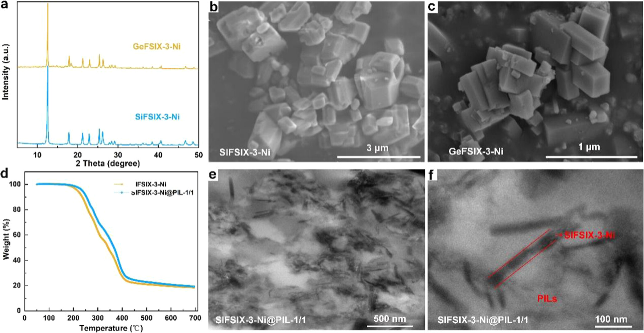 (4) TEM结果表明,SIFSIX-3-Ni颗粒成功地被包封在PIL中,两种材料之间没有观察到界面间隙。