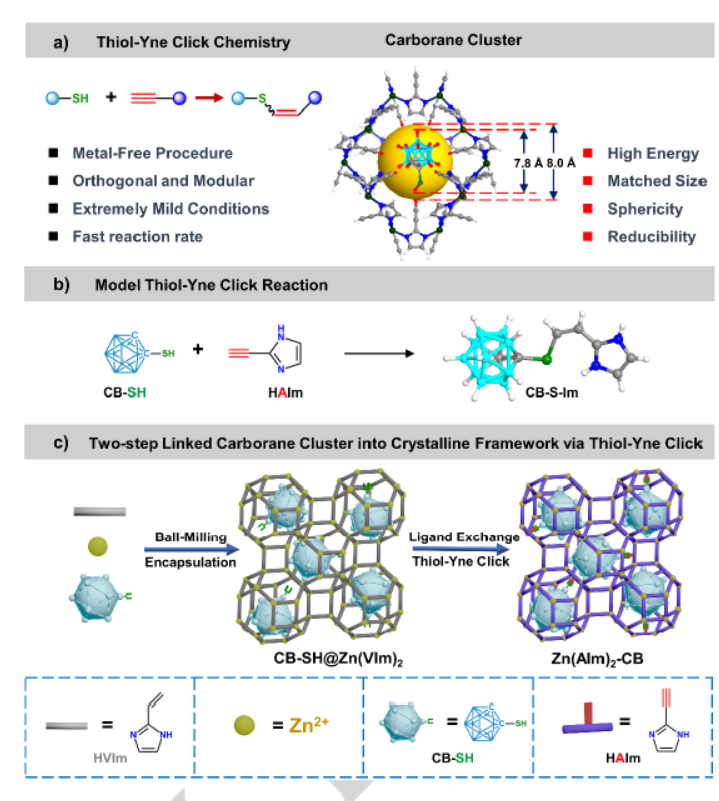【MOF高能材料】:通过硫醇-炔点击化学将碳硼烷团簇引入晶态框架,用于高能材料