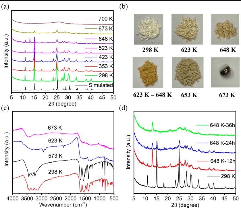 (2) 对FDU-HOF-1进行不同温度热处理,发现经648K处理36h后,材料结构发生变化,形成热交联HOF(TC-HOF)。