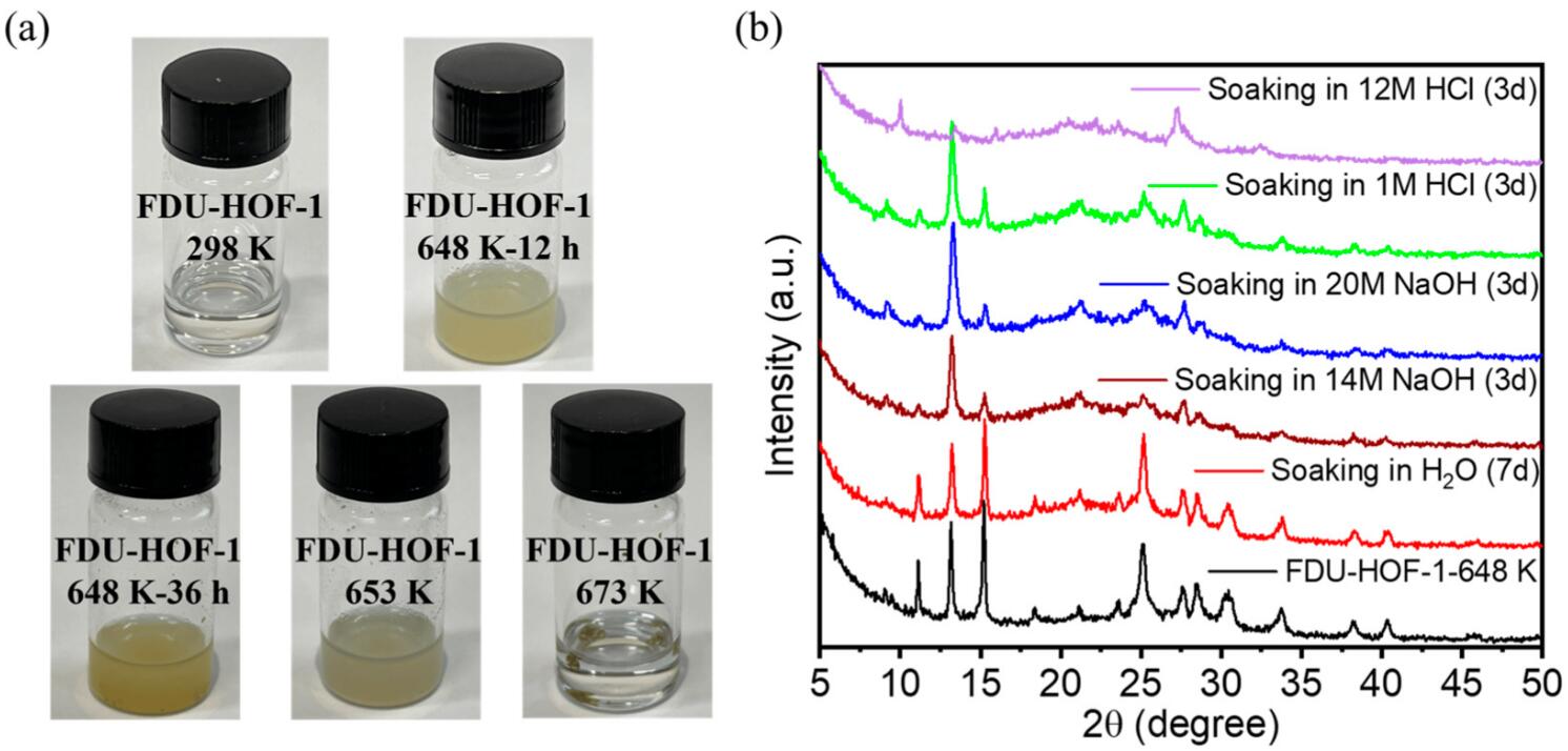 (1) 氢键有机框架材料(HOF)因氢键能量弱、结构柔性,在苛刻条件下长期使用时容易发生坍塌。