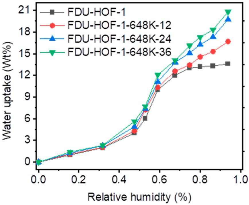 (1) 水蒸气吸附实验表明,TC-HOF的水吸附量高达20.8 wt%,高于原始FDU-HOF-1的13.7 wt%,表明热交联后孔道率提高。