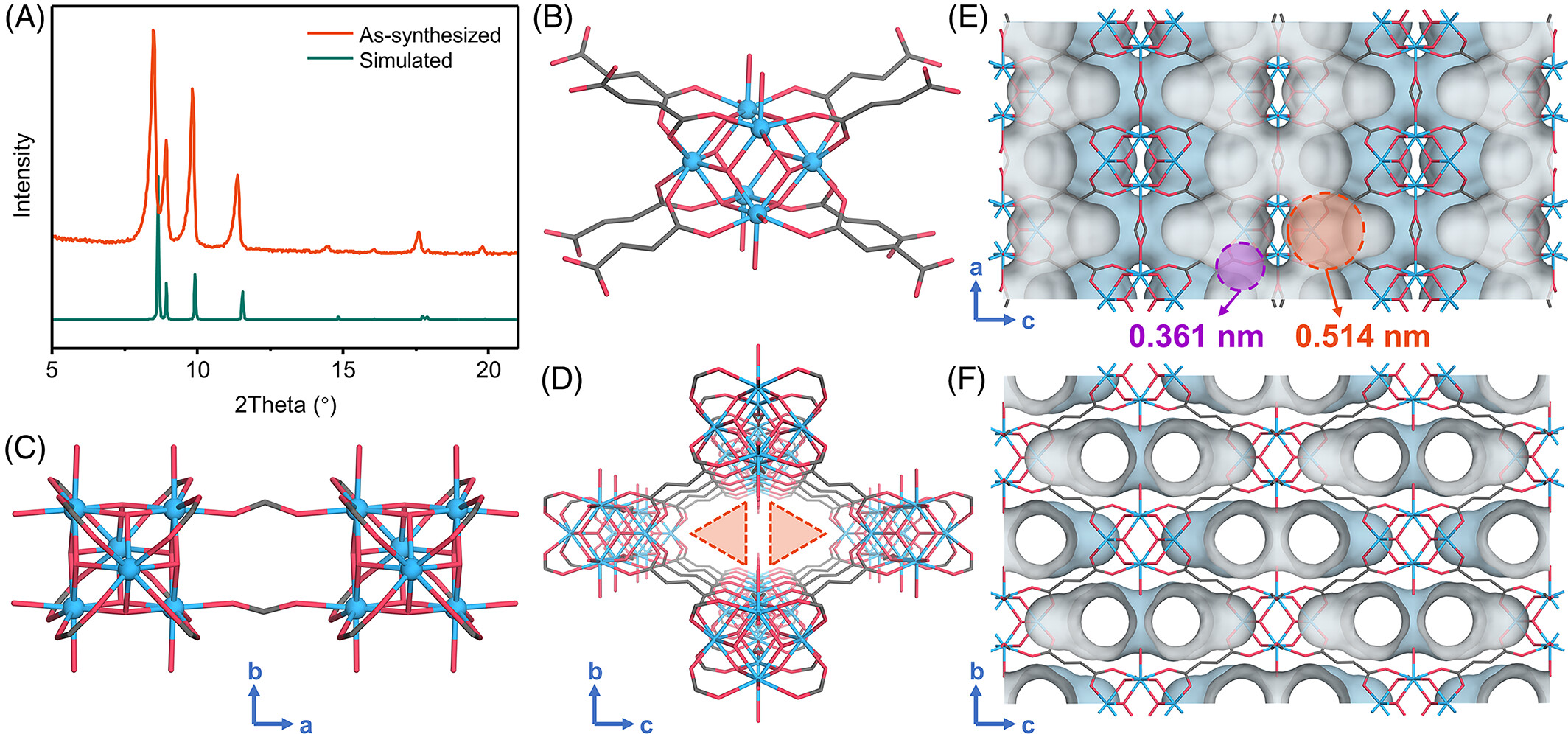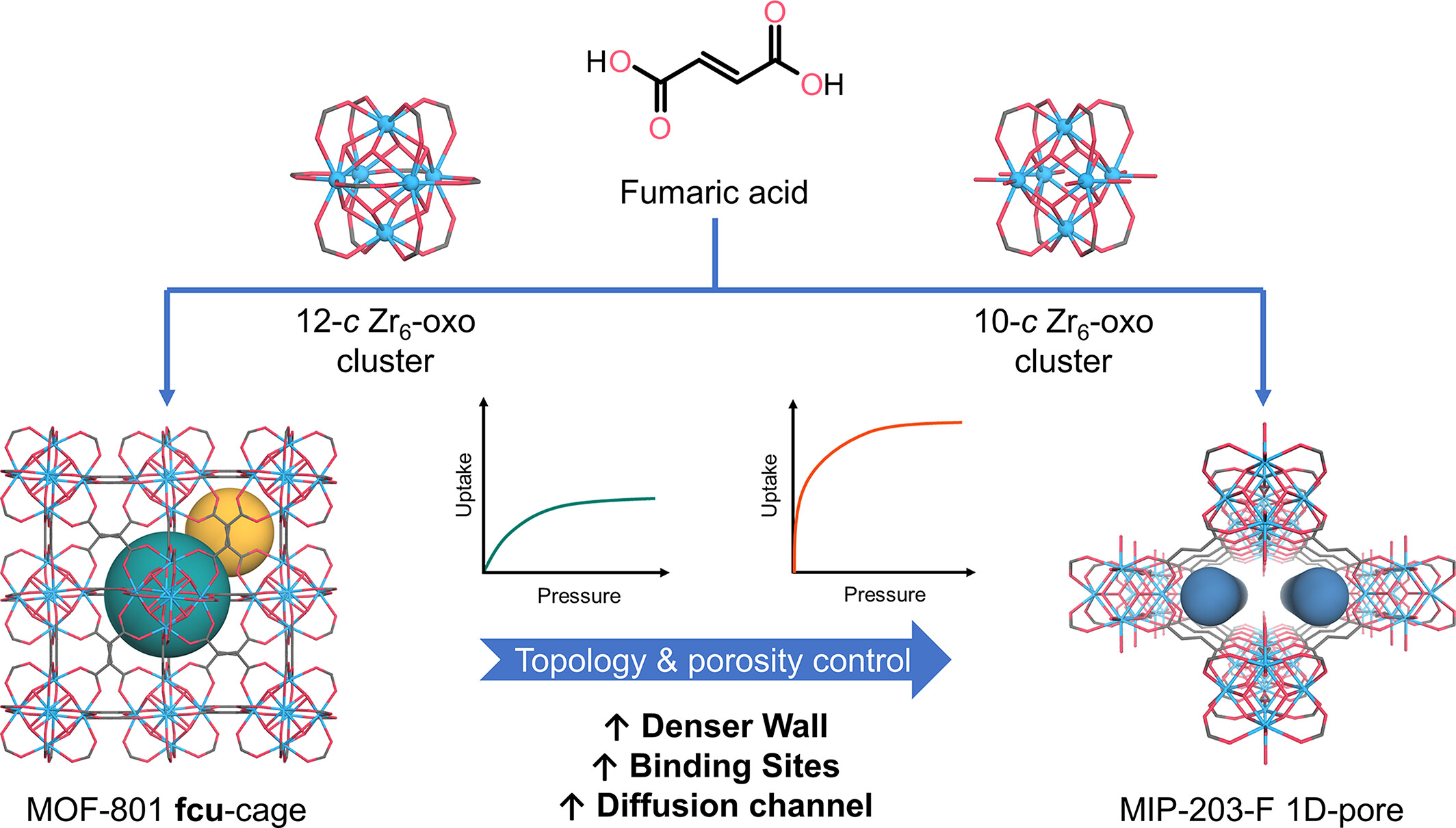 (1) 通过调控合成条件,利用相同的金属盐和有机配体,成功构建了具有一维孔道的MIP-203-F材料。