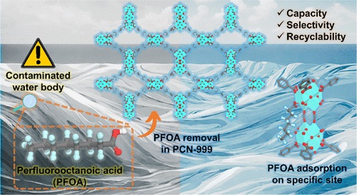 Exceptionally High Perfluorooctanoic Acid Uptake in Water by a Zirconium-Based Metal–Organic Framework through Synergistic Chemical and Physical Adsorption