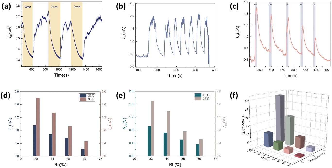(2) 探究了MEIEG的工作机理,证明电输出信号主要是由发电器周围水蒸发引起的定向水流引起的。