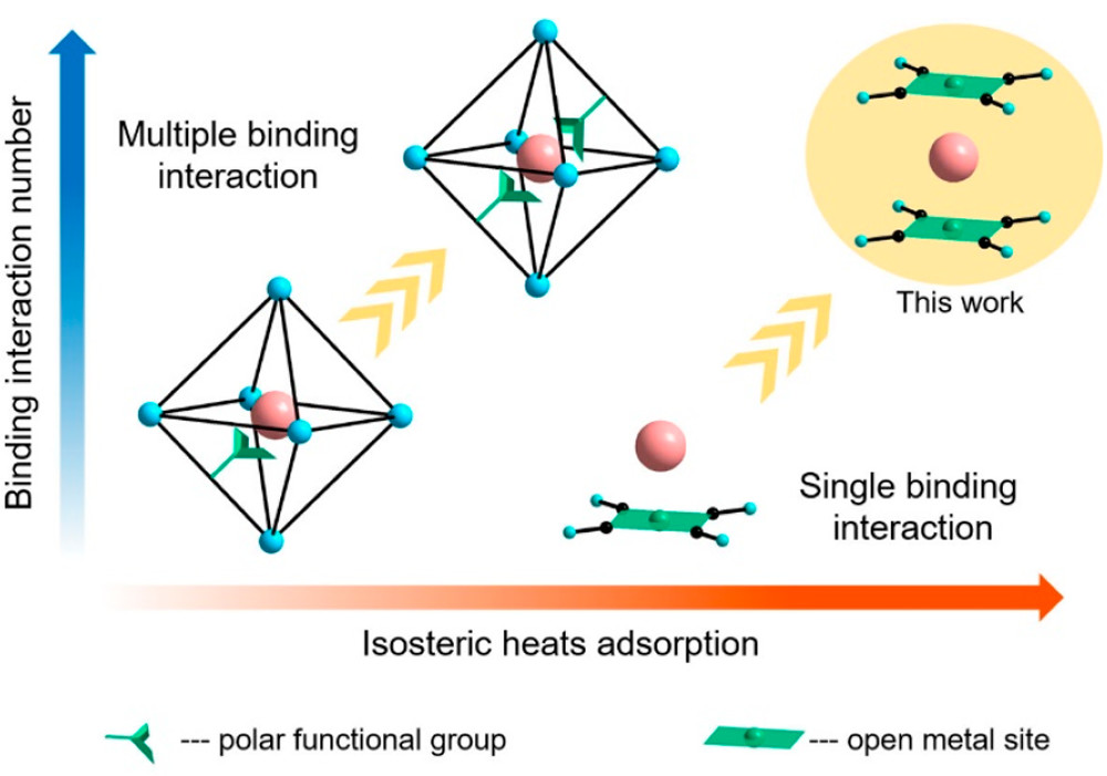 (2) 传统的低温蒸馏法能耗高、成本高。多孔材料基于压力摆动吸附法的气体混合物分离是一种节能、低成本的替代方法。但大多数多孔材料如沸石、活性炭等选择性和容量都较低。