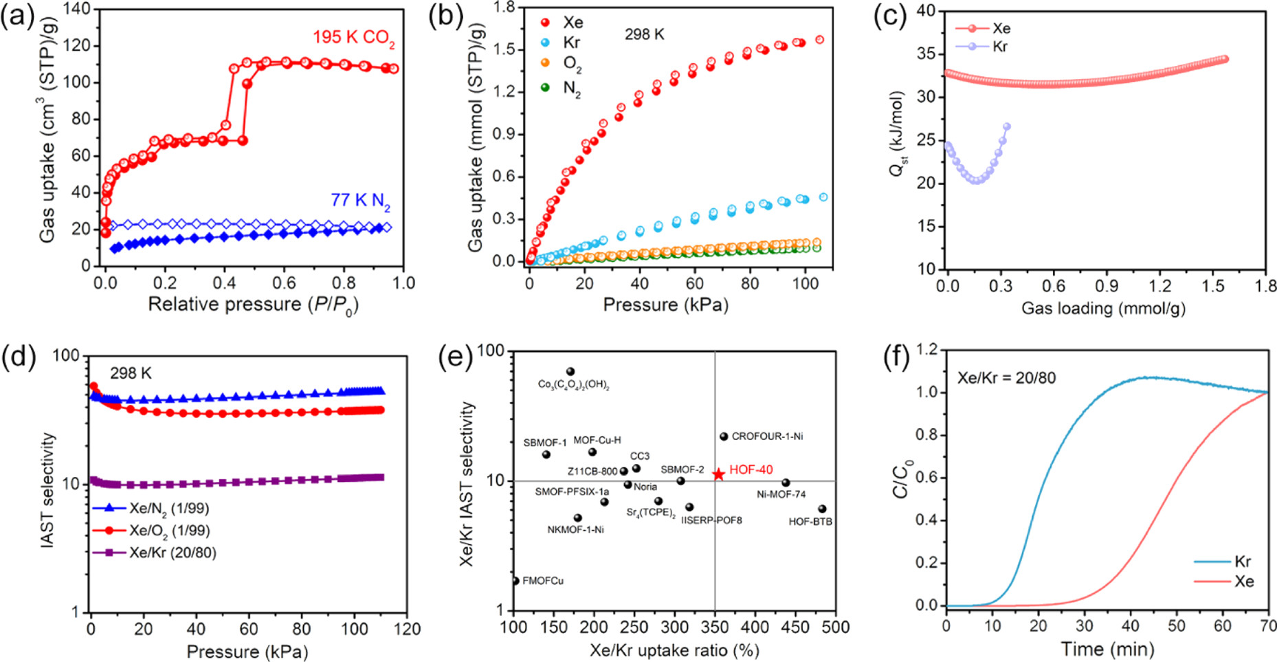6)进行了氙/氪(20/80)混合气体的动态突破实验,评估了HOF-40的动态分离性能。