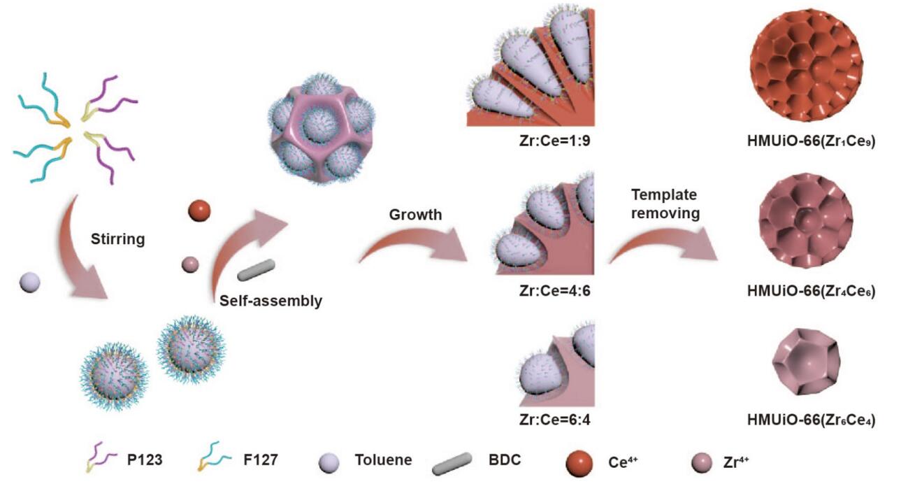 (1) 成功构建了一系列不同Zr/Ce比例的双金属分级大孔HMUiO-66(Zr/Ce),实现了对其组成、粒径和缺陷的精确调控。