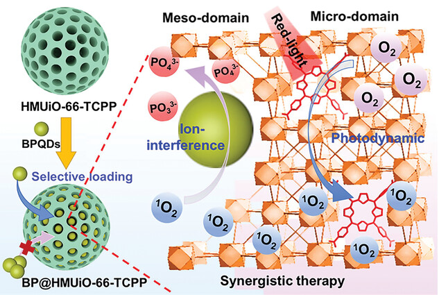 1)华东理工大学顾金楼组发表的文章(Small 2022, 18, 2204295)提出了一种基于分级介孔金属-有机骨架(HMMOFs)的纳米平台,将黑磷量子点(BPQDs)和介孔卟啉(TCPP)整合在一起,实现了在特定癌症区域内可控产生磷酸根离子(PAs),用于离子干扰疗法(IIT)。