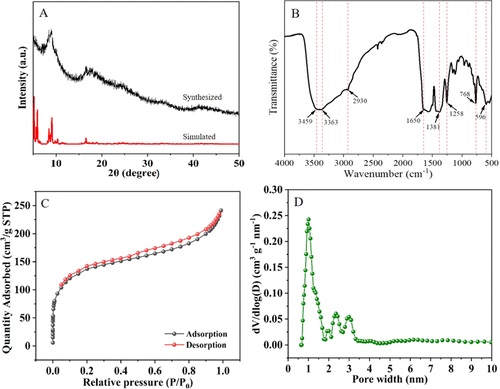 (1) 合成了MIL-101(Cr)-NH2作为支撑基质,并用XRD、FT-IR、N2吸附-脱附等手段表征了其结构和性质。