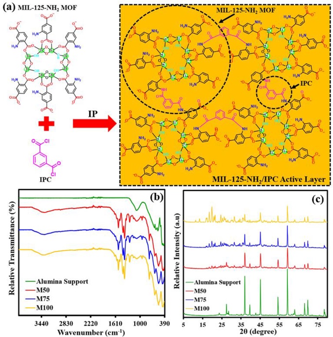 (2)通过界面聚合在氧化铝陶瓷载体上修饰三种不同浓度的MIL-125-NH2 MOF,制备出M50、M75和M100三种膜。