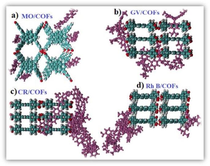 1)通过MD和良温元动力学模拟,研究了COFs对七种染料污染物的吸附行为。