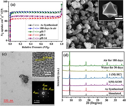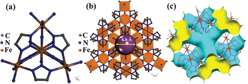 2) 气体吸附:77K下的氮气吸附等温线显示了Fe-MET的微孔性质,BET比表面积为416 m2 g−1,孔径为4.6 Å。
