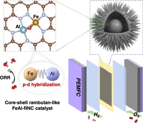 Efficient Proton-exchange Membrane Fuel Cell Performance of Atomic Fe Sites via p–d Hybridization with Al Dopants
