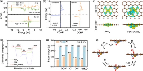 3)密度泛函理论(DFT)计算揭示了Fe-Al原子对周围的p-d轨道杂化作用,导致显著的电子分布不对称性和优化的Fe d带中心,促进了ORR过程中OH*中间体的解吸。