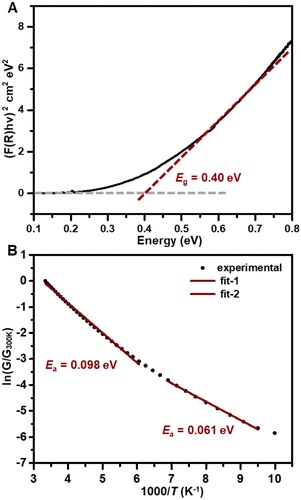 2. UV–vis–NIR漫反射光谱:Ni3(THT)2在550到1100 nm范围内显示出强烈的吸收,通过Tauc分析得到的吸收边值为0.40 eV,这与Fe3(THT)2相似。