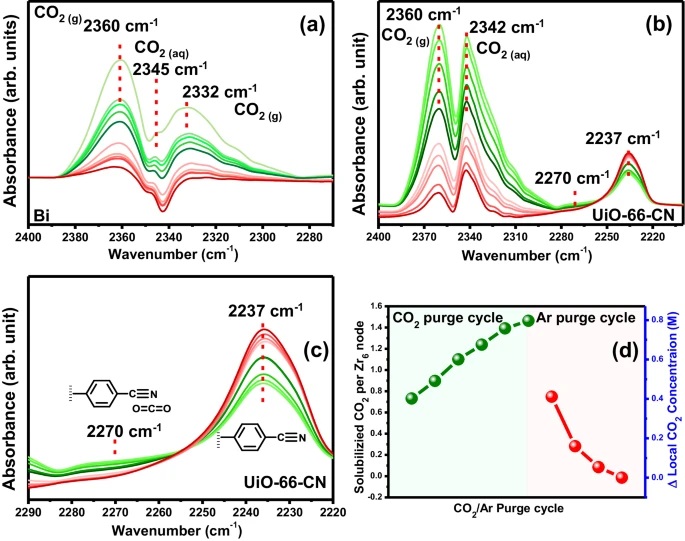 5. 红外反射吸收光谱(ATR-IRRAS):结合DFT模拟,揭示了UiO-66-CN膜增强eCO2RR活性的机理,包括增加局部CO2溶解度和稳定催化中间体。