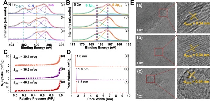 3)XPS分析:用于分析COFs的元素组成和电子状态,确认了C=N、C=O和S 2p的化学环境。