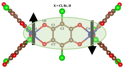 - 随着连接体上官能团从−Cl变为−Br再变为−H,交换相互作用呈现系统性降低。