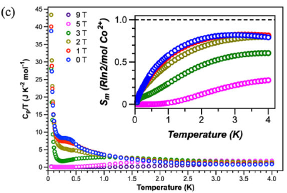- 在低磁场下观察到的比热容的上升可能是由于磁性晶格的阻挫所致。