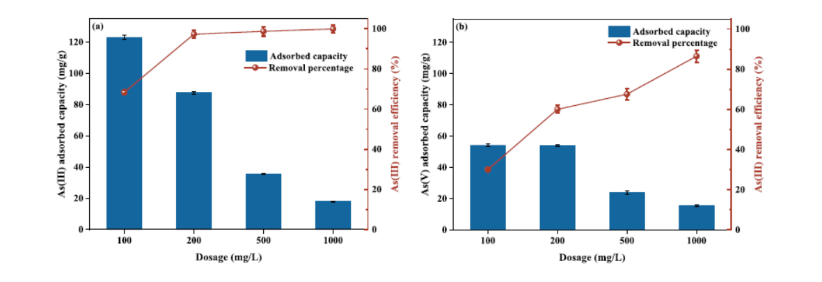 - 研究了ZIF-8剂量、溶液pH、共存离子对As(III)和As(V)吸附效果的影响。