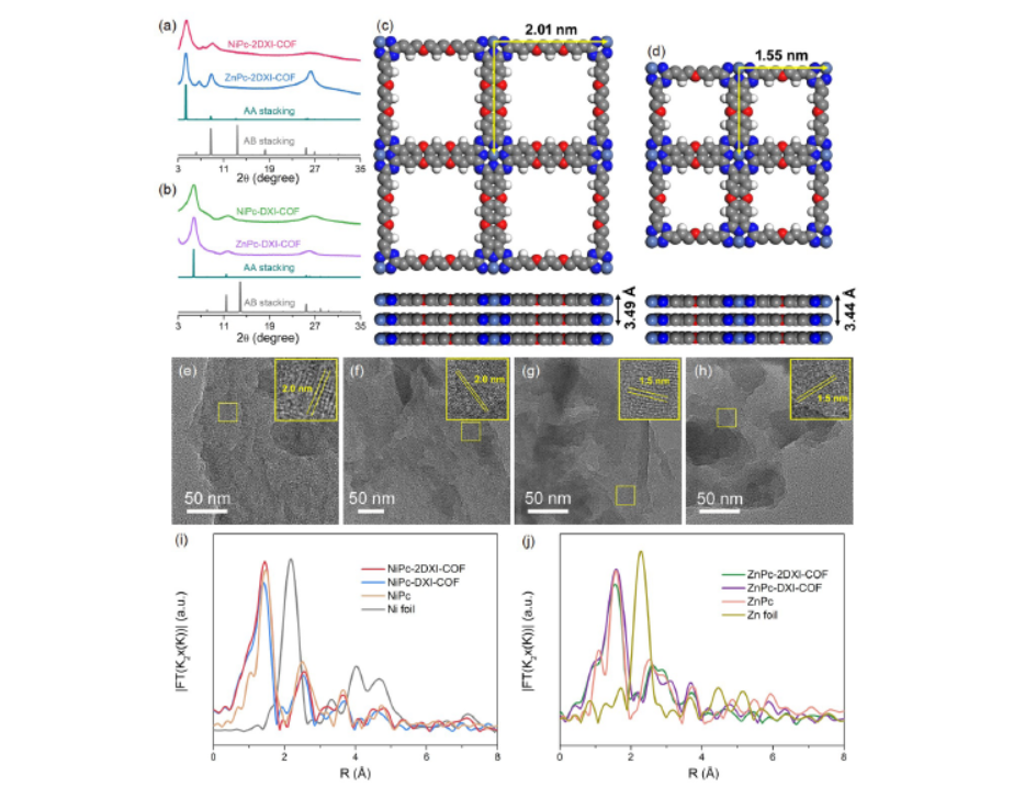 3) 化学稳定性分析:NiPc-nDXI-COFs在苛刻条件下处理后,其晶体性没有显著损失,显示了它们出色的化学稳定性。