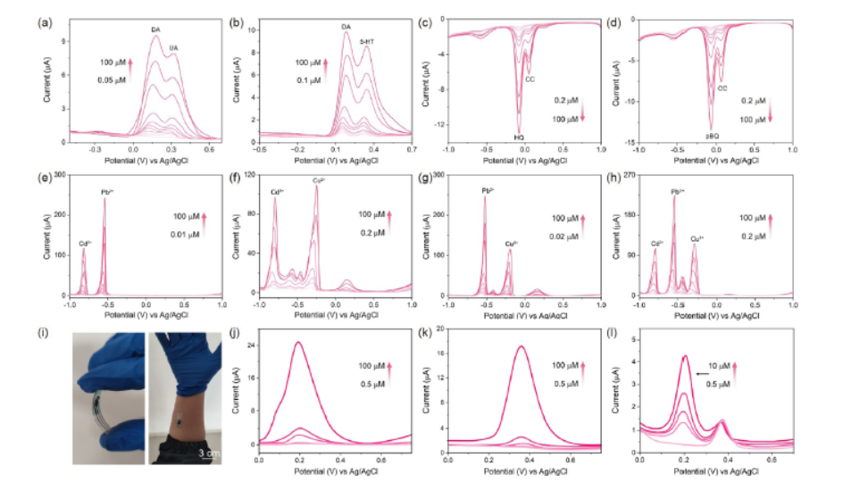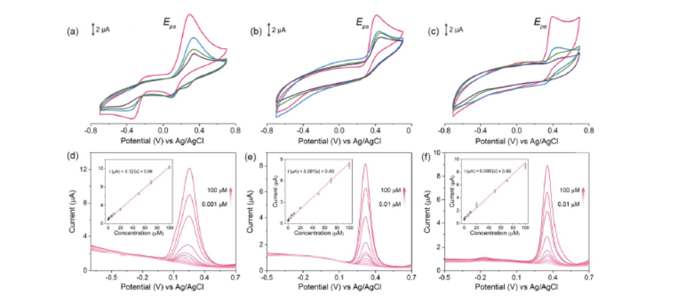 6) 多组分检测实验:使用NiPc-2DXI-COF电极进行了二元和三元混合物中三种不同类型的分析物的同时检测实验。