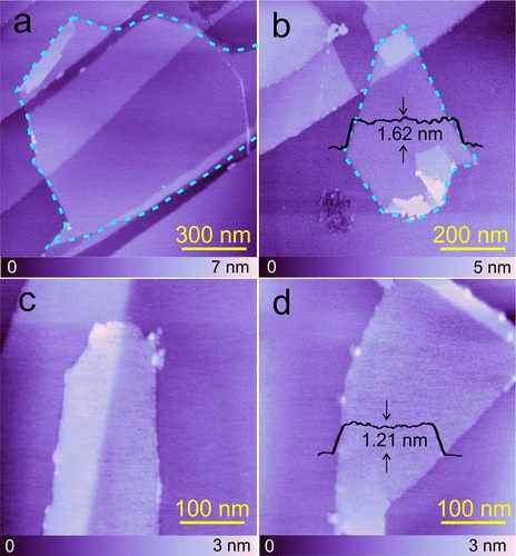 - AFM图像表明,超薄膜具有原子级平坦的表面,表面粗糙度约为0.5 nm。