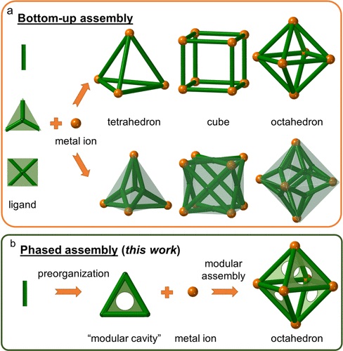 2. 结构表征:通过单晶X射线衍射(SC-XRD)分析确认了MOPs的晶体结构,显示了两种MOPs的八面体几何结构,并通过NMR和质谱进一步验证了它们的形成。