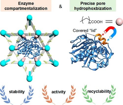【MOF固酶】:同步提高酶稳定性和活性的协同孔分隔和疏水策略
