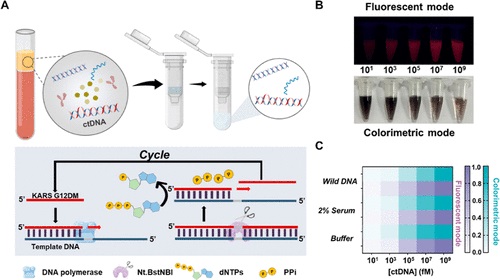 - 设计了针对KRAS G12D突变的ctDNA的EXPAR方案,利用CE-24 MOF对PPi的响应实现了ctDNA的定量检测。