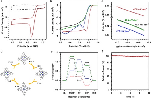 本文成功开发了一种新型的具有五边形孔洞的二维共价有机框架材料,这些材料不仅具有高结晶性、优异的孔隙性和强大的化学稳定性,而且由于内置的卟啉单元,还展现出了高效的氧还原反应电催化性能。特别是(Co)TAPP-PBTD-COF,其半波电位高达0.81 V,是COFs基电催化剂中的佼佼者。这项工作不仅为设计具有特定孔洞形状的2D COFs提供了新思路,也为开发新型功能性COFs作为电催化剂开辟了新途径。
