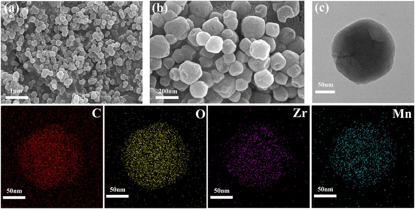 1. SEM和TEM:观察Mn1D40UiO-66的形貌和尺寸。