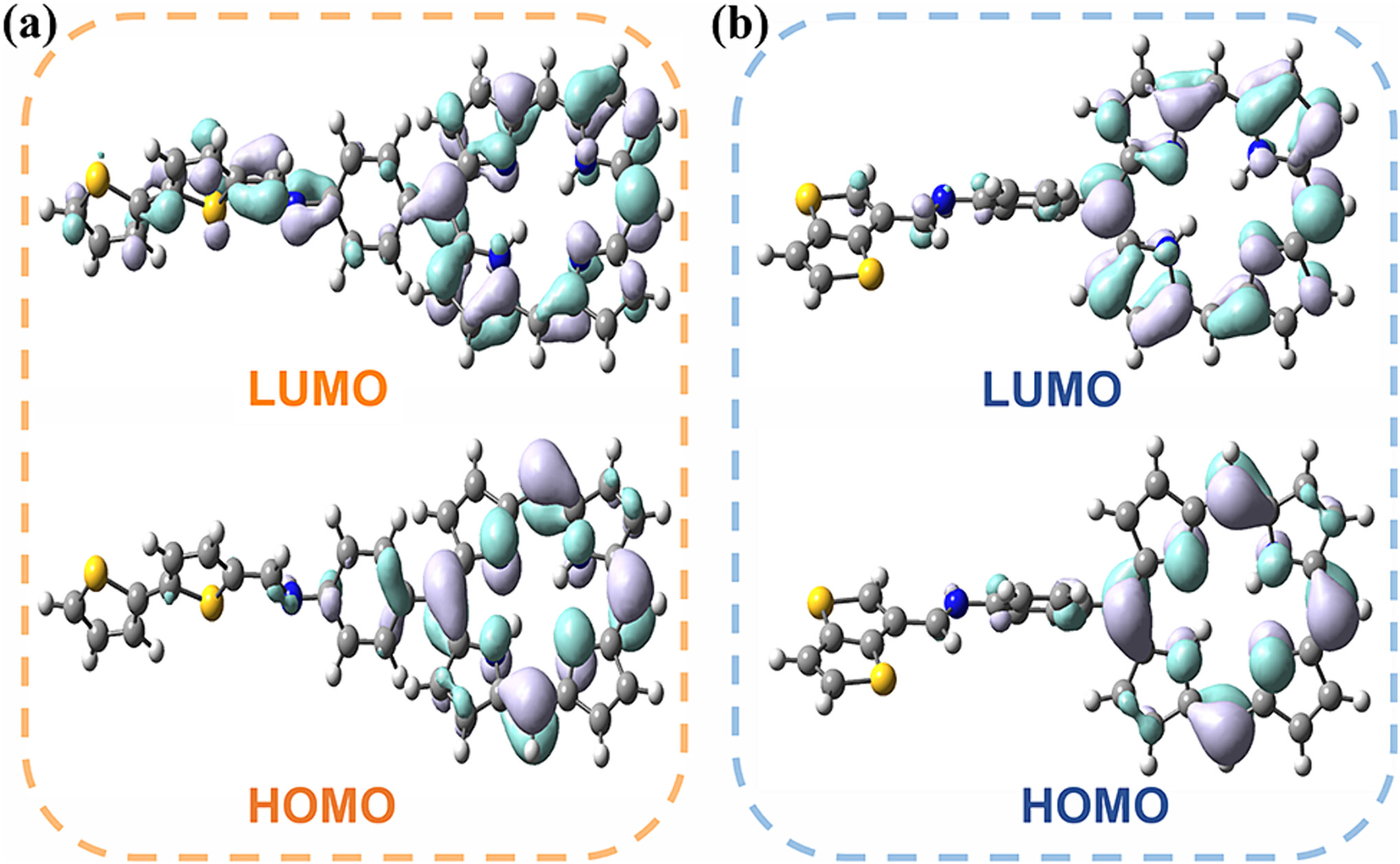 西北大学雷琳、贾传东、李珺老师等报道的本篇文章(Appl Organomet Chem. 2024;e7605)中通过合成两种结构高度相似的共价有机框架(COFs),分别为含卟啉的给体单元和2,2'-联噻吩(BTDA)的受体片段构成的BTDA-Por,以及使用噻吩并[3,2-b]噻吩(TT)单元构建的非给体-受体型TT-Por,来研究给体-受体(D-A)结构对提高光催化活性的具体作用。实验和理论计算结果表明,D-A型结构显著提高了电荷载流子的生成、分离和迁移效率。因此,与非D-A型TT-Por相比,D-A型BTDA-Por在光化学反应如芳香胺的氧化偶联和可逆络合介导的自由基聚合(RCMP)中表现出更优越的性能。