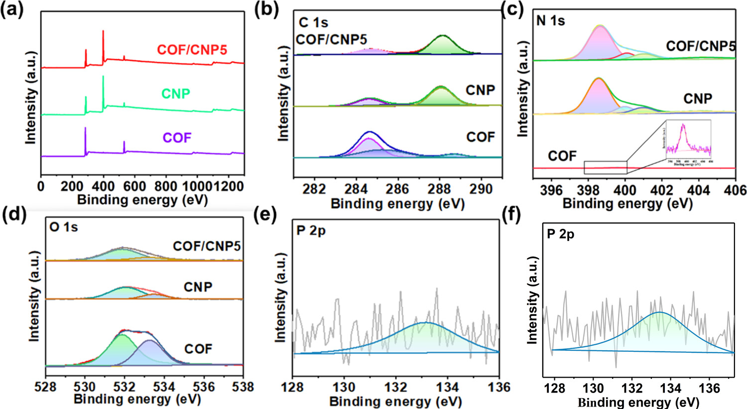 - COF和CNP的C 1s峰分别位于284.6, 286.3, 和 288.0 eV。