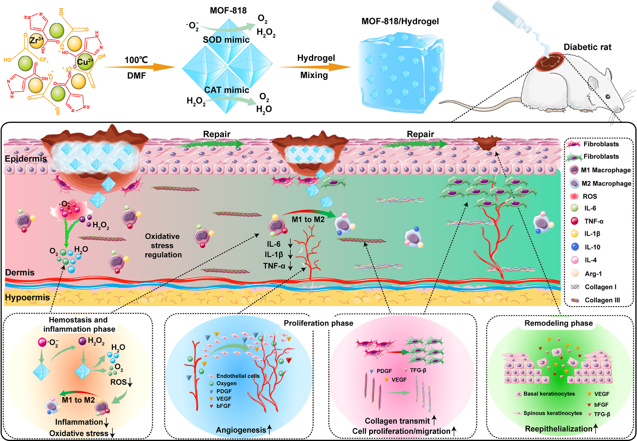 【介孔MOF固酶】基于抗氧化酶模拟MOF-818纳米酶的特异性纳米药物用于糖尿病慢性伤口治疗