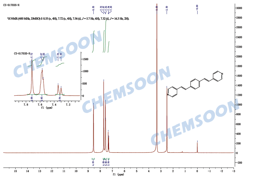 产品名称:4,4'-[1,4-phenylenedi-(1E)-2,1-ethenediyl]bis-Pyridine