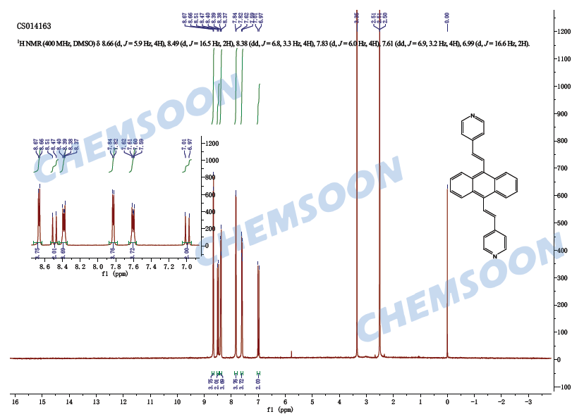 产品名称: 9,10-bis((E)-2-(pyridin-4-yl)vinyl)anthracene