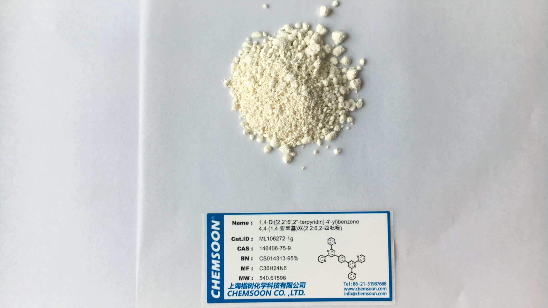 产品名称:1,​4-​bis(2,​2':6',​2''-​terpyridin-​4'-​yl)​benzene
