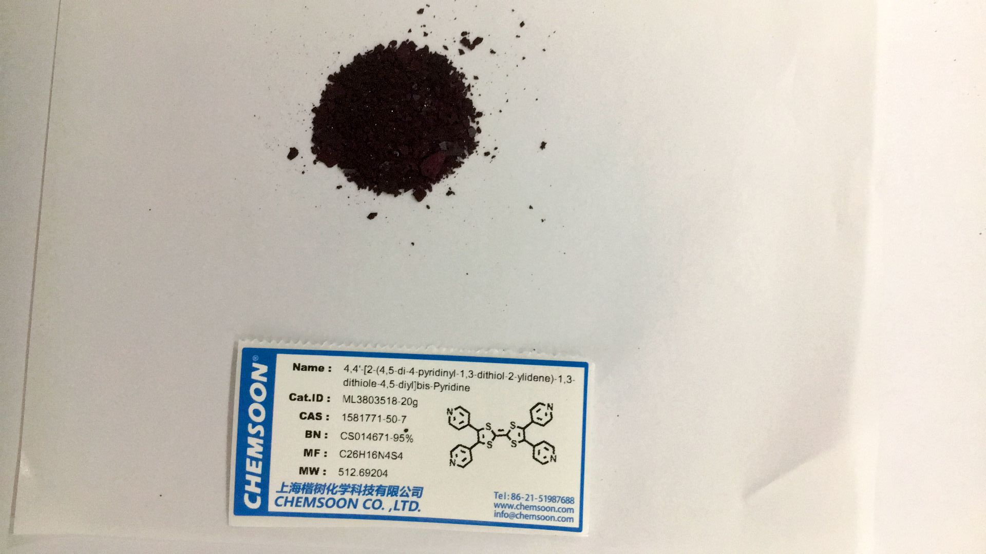 产品名称:4,4'-[2-(4,5-di-4-pyridinyl-1,3-dithiol-2-ylidene)-1,3-dithiole-4,5-diyl]bis-Pyridine