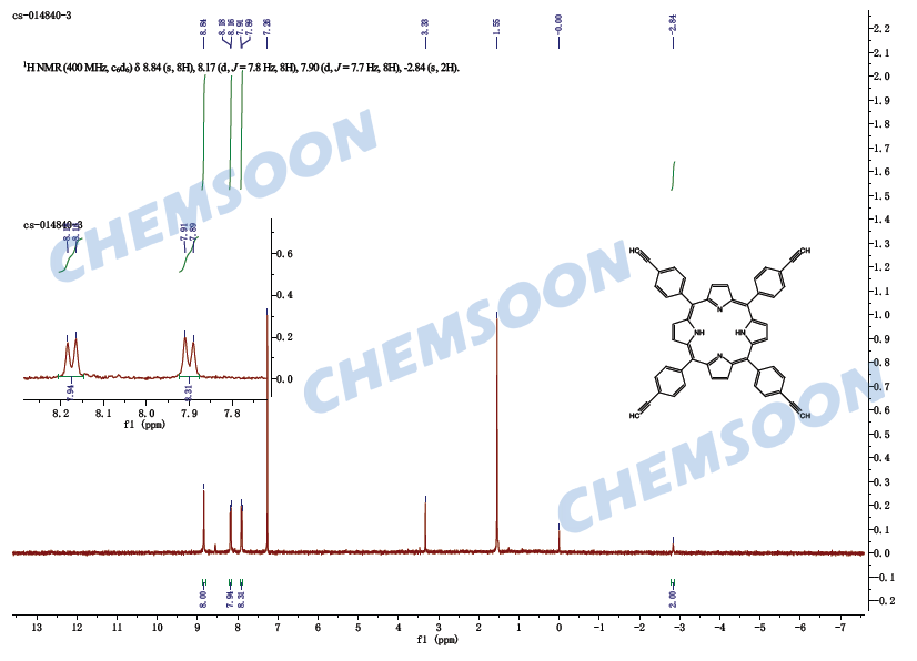 其他名称: 5,10,15,20-四(4-乙炔基苯基)卟啉;TEPP;5,10,15,20-tetrakis(4-(ethynylphenyl)porphyrin